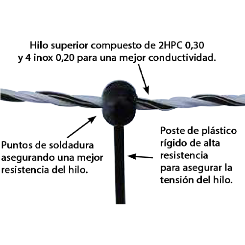 Bergernet para ovejas, malla para ovejas con rigidificador cada 30 cm con clips de acero inoxidable para conectar hilos. 3 inox. 0,20 mm. Longitud: 50 m. Altura: 0,90 m. Filas: 8.